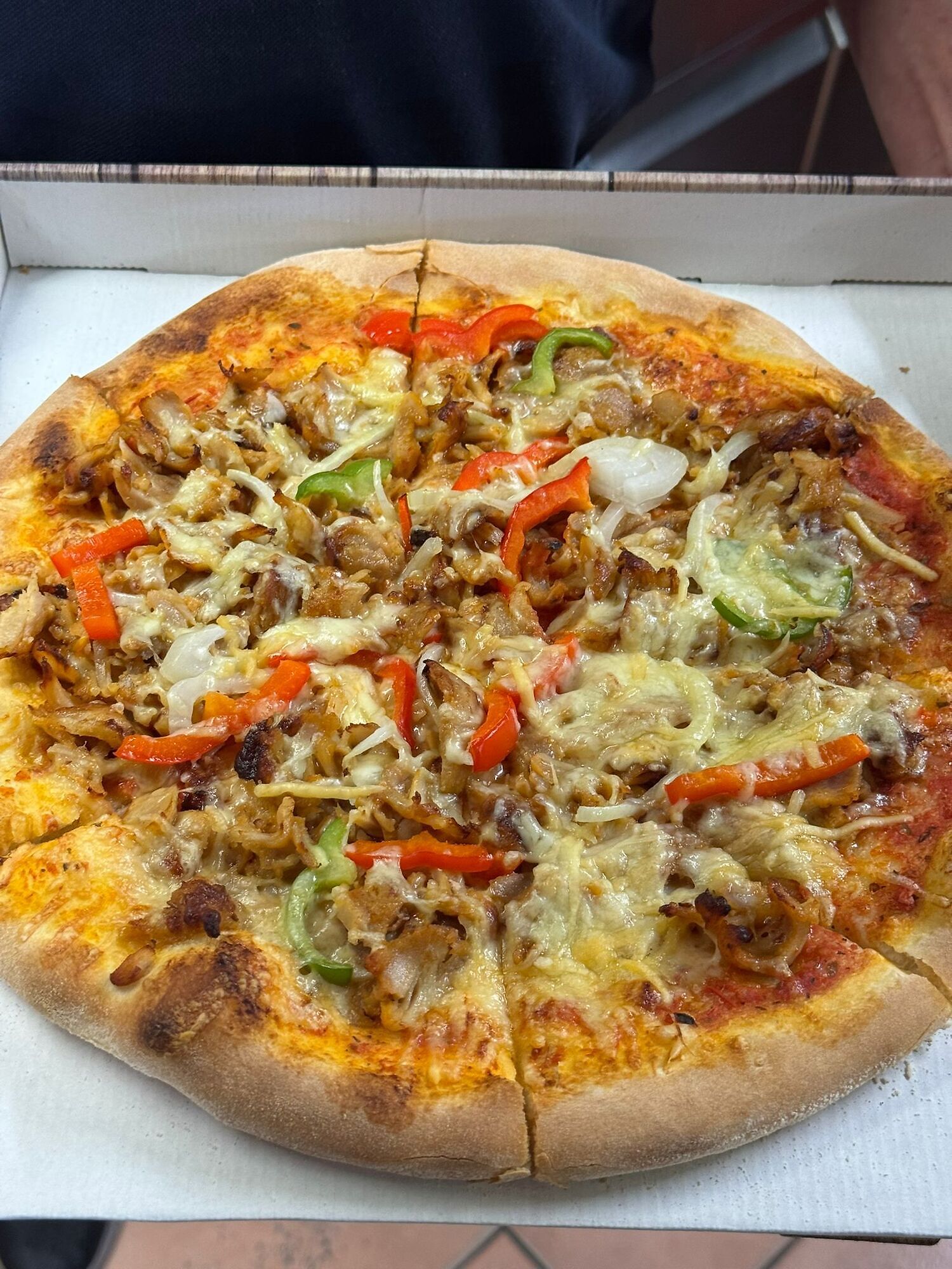 Met onze tomatensaus, kaas, paprika, ui en döner