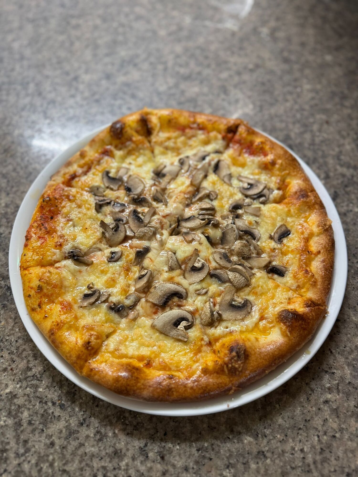 Met onze tomatensaus, kaas en champignon